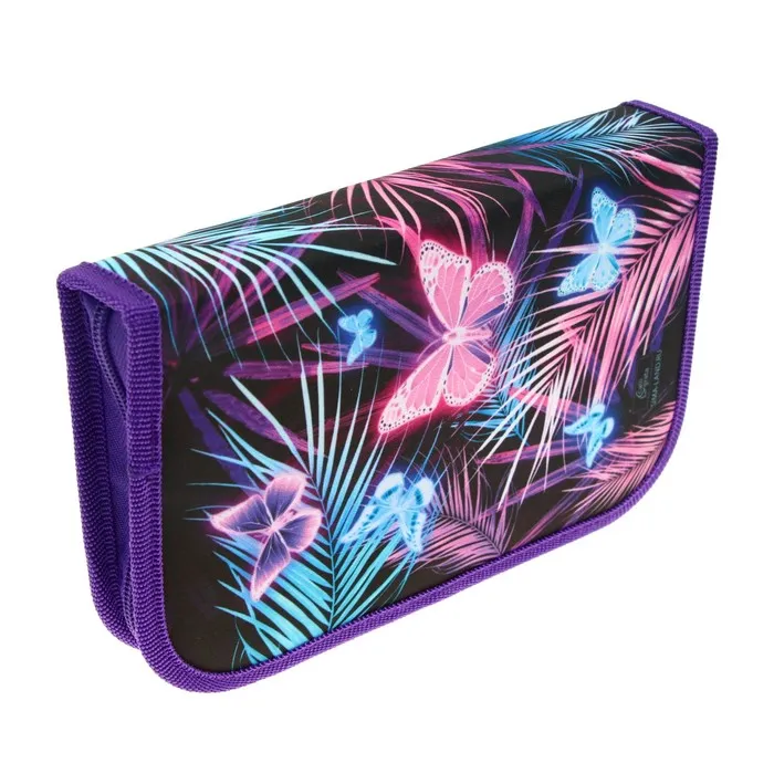 Пенал «Бабочки» 1 секция, 130×210×40 мм, 2 откидные планки, тканевый — Характеристики