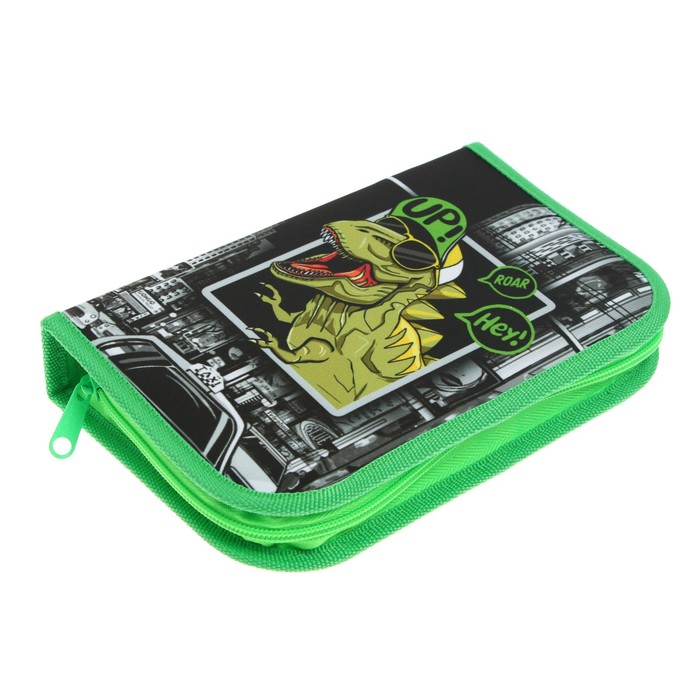 Пенал «Дино» 1 секция, 130×210×40 мм, 2 откидные планки, тканевый — Характеристики