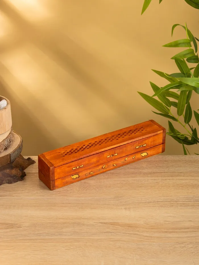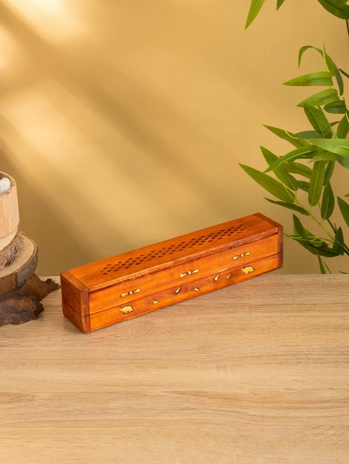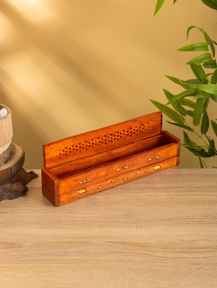 Пенал для благовония двойной с хранением, дерево шишам 30,5 см