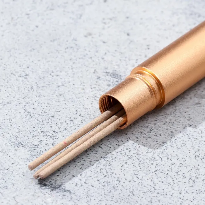 Изысканный металлический пенал цвета благородного золота — не просто упаковка, а настоящий элемент уюта и стиля. Внутри — тщательно подобранные благовония, которые наполнят пространство теплом, тишиной и тонкими ароматами покоя.
