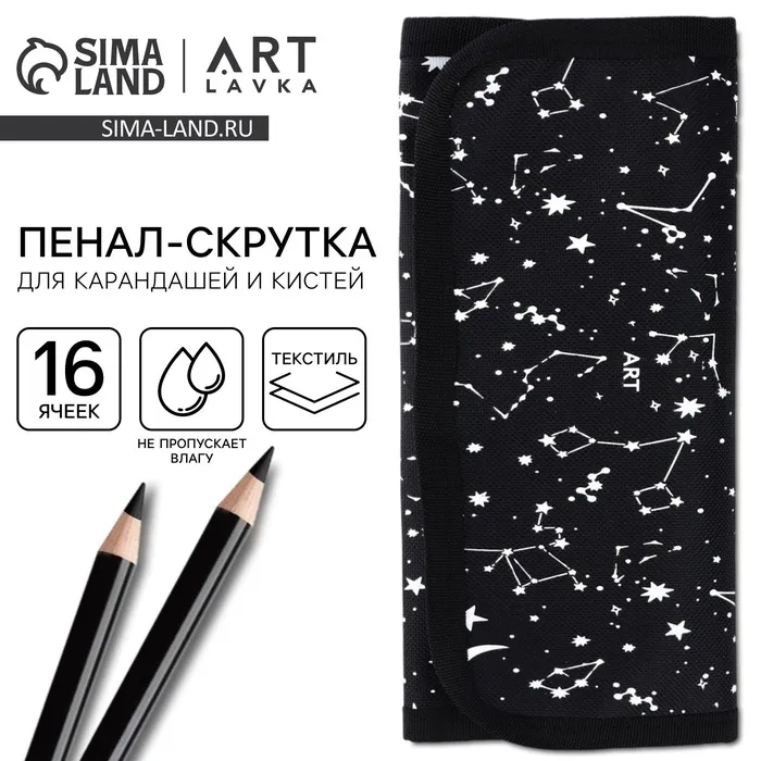 Пенал для кистей и карандашей текстиль, 16 предметов «Космос» — Характеристики