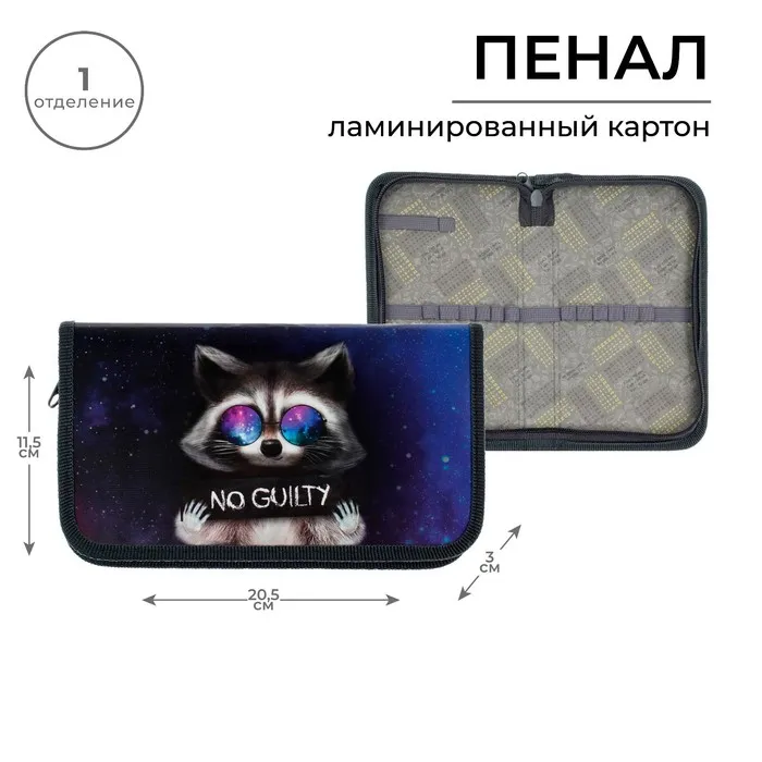 Пенал «Енот» 1 секция 115×205×30 мм, ламинированный картон — Характеристики