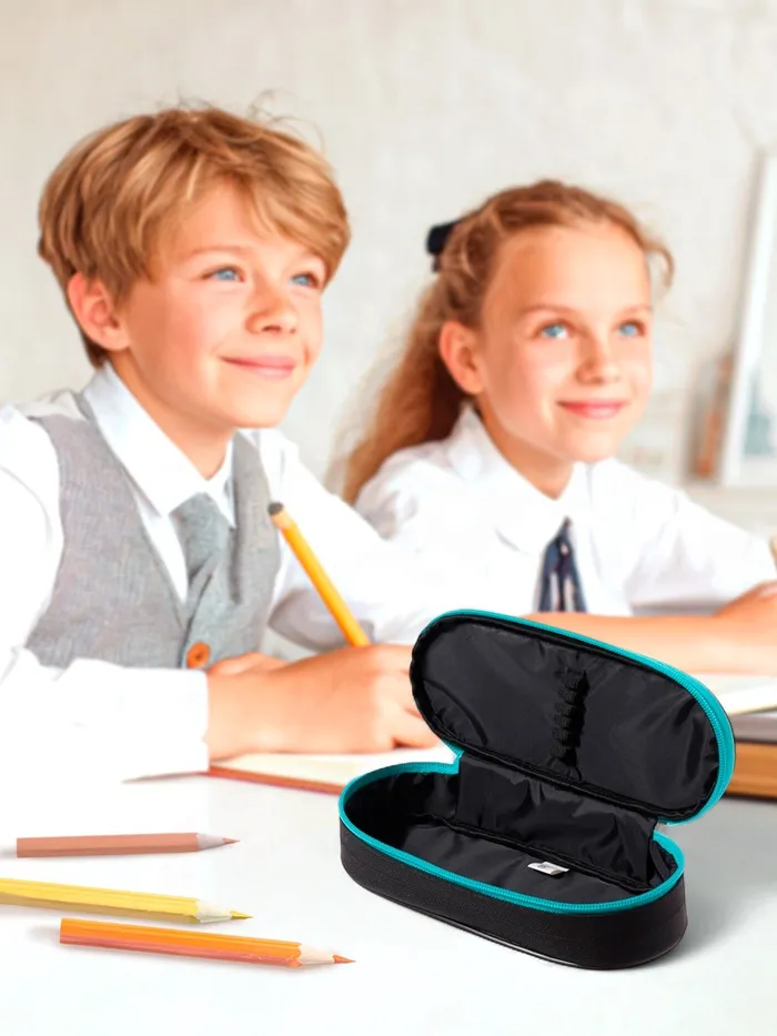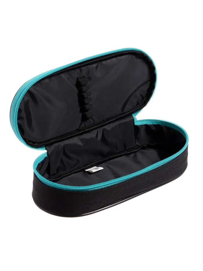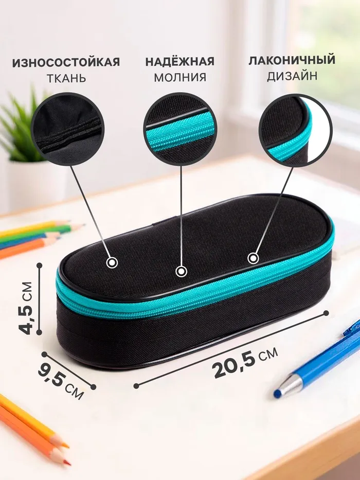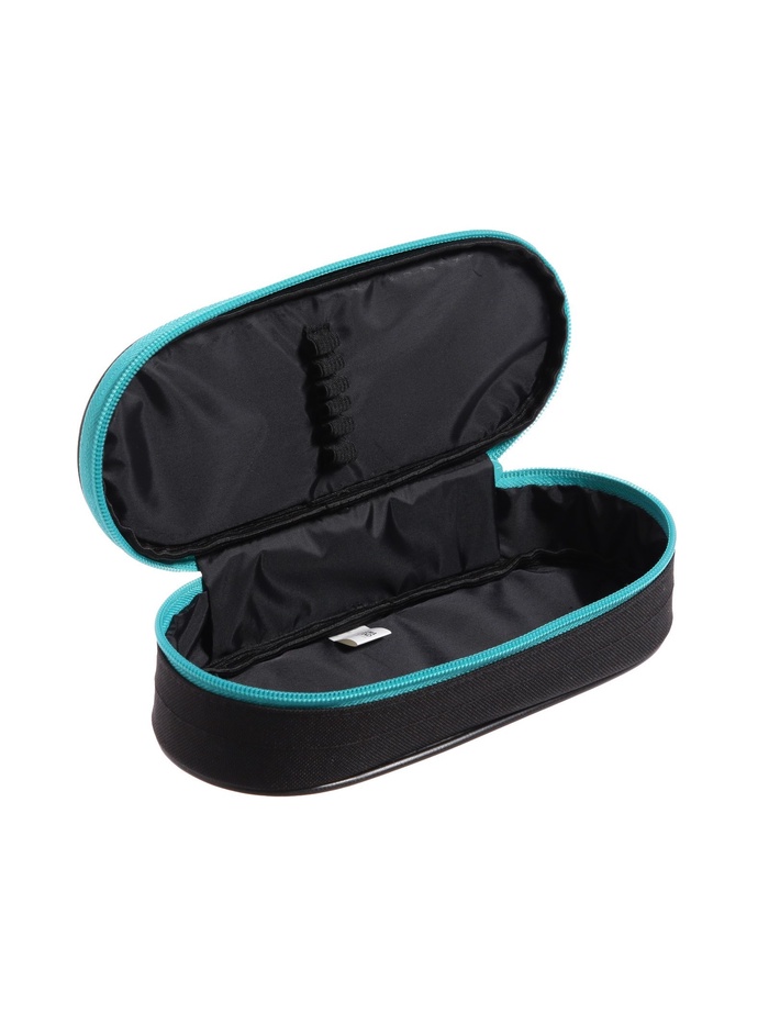 Пенал-футляр 95 х 205 х 45 мм, мягкий, текстильный, Calligrata, ПМК 27-20 Black, резинка на клапане, черный/бирюзовый — Характеристики