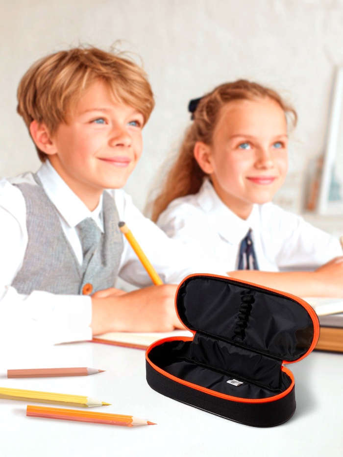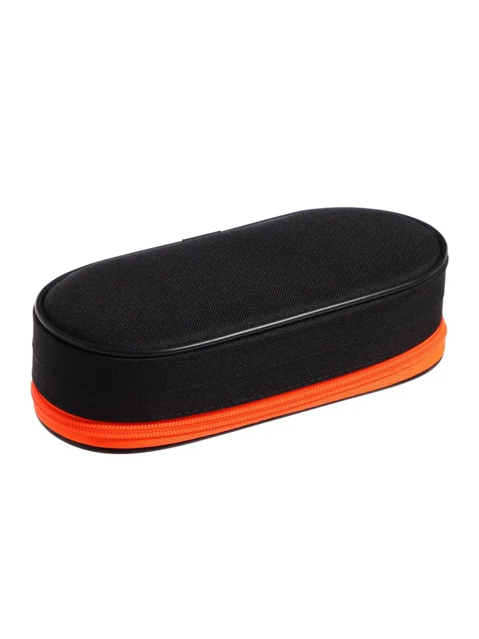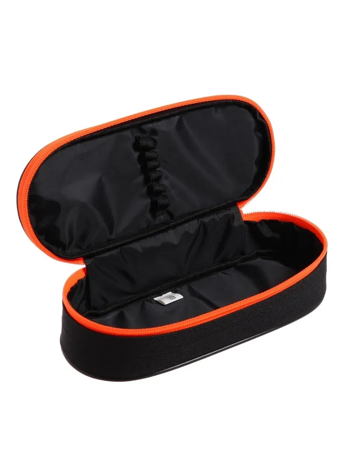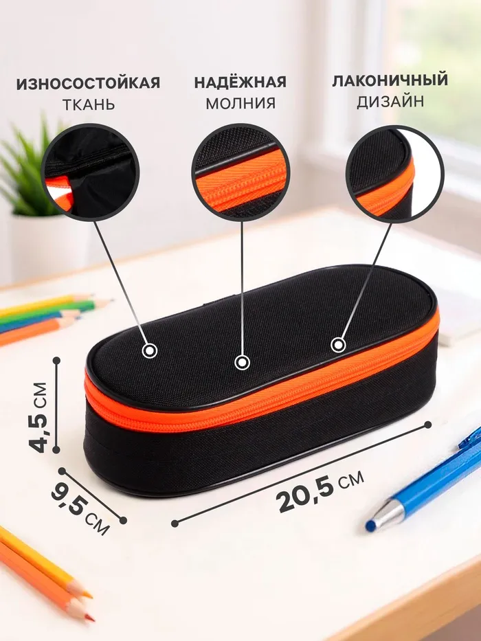 Пенал-футляр 95 х 205 х 45 мм, мягкий, текстильный, Calligrata, ПМК 27-20 Black, резинка на клапане, черный/оранжевый — Характеристики