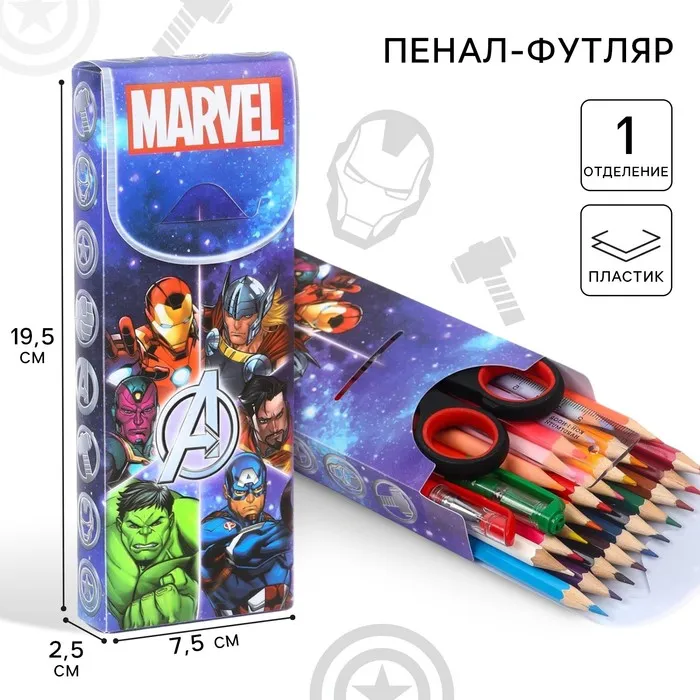 Пенал-футляр пластиковый, 75×195×25 мм, сборный, «Мстители» — Характеристики
