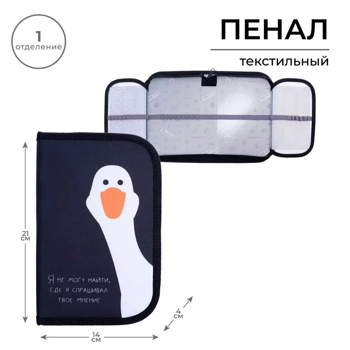 Пенал «Гусь» 1 секция, 130×210×40 мм, 2 откидные планки, тканевый — Характеристики