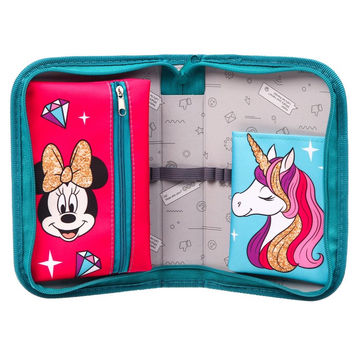 Пенал каркасный, 1 секция, 14×21×4 см, откидной карман, тканевый, «Минни Маус и единорог» — Характеристики