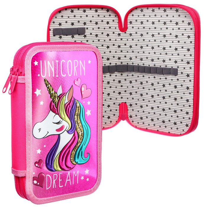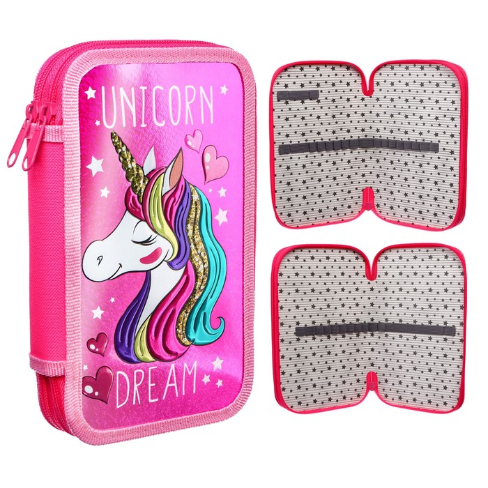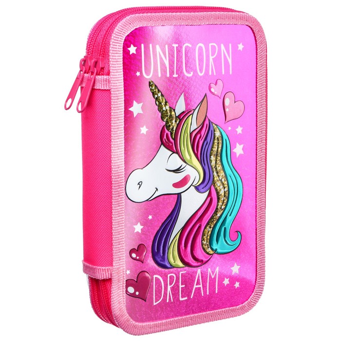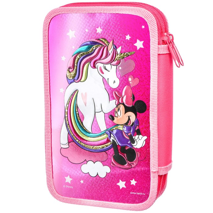 Пенал каркасный с эффектом металлик, 2 секции, 125×205×40 мм, ламинированный картон, Минни Маус и единорог — Характеристики