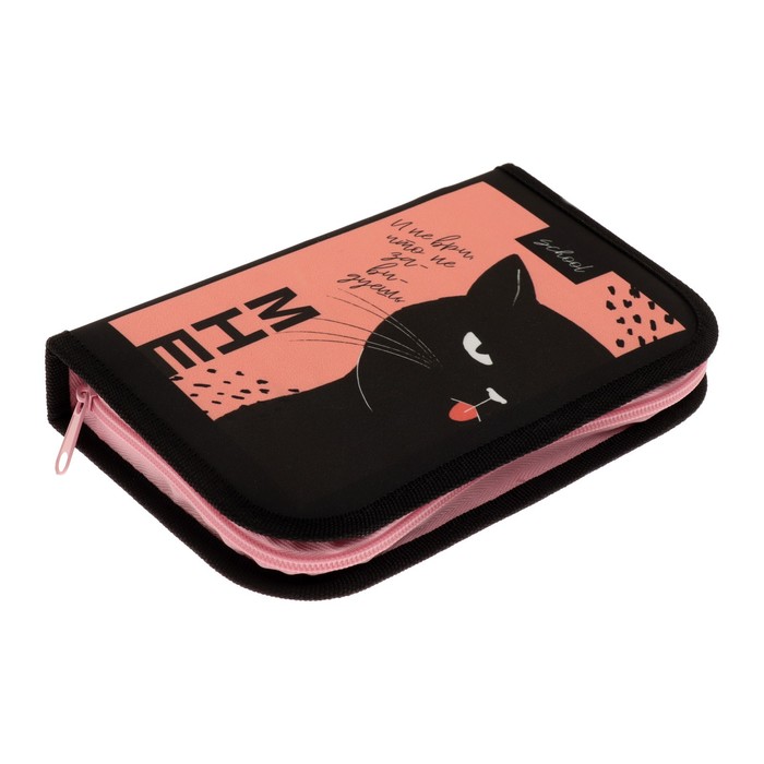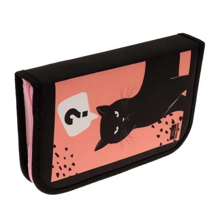 Пенал «Кот», 1 секция, 130×210×40 мм, 2 откидные планки, тканевый, чёрный — Характеристики