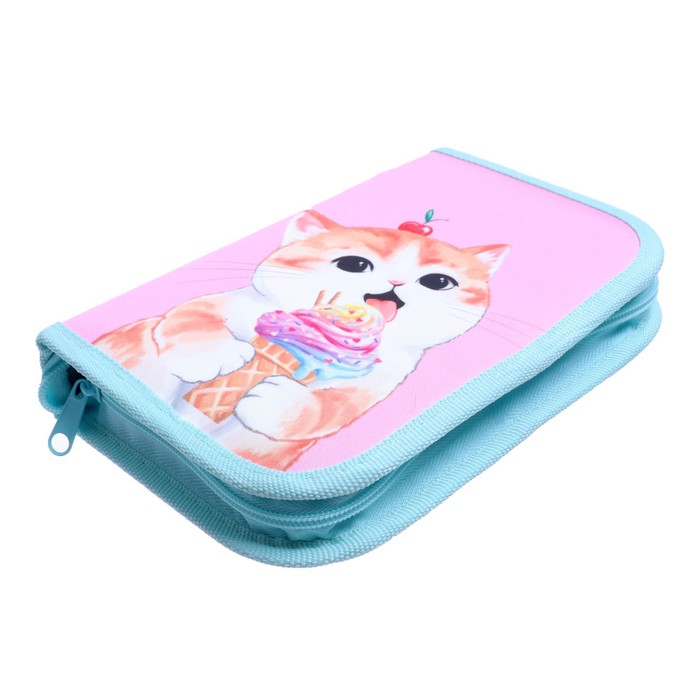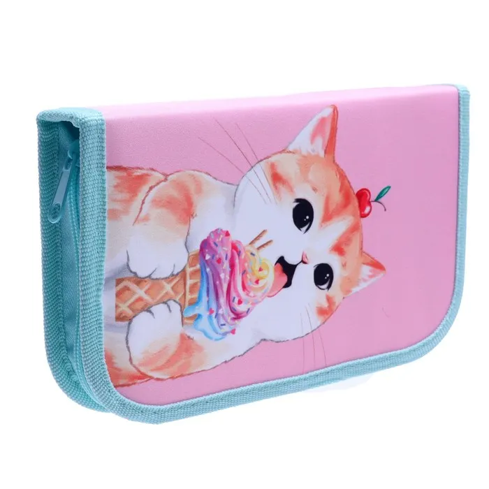 Пенал «Котик» 1 секция, 130×210×40 мм, 2 откидные планки, тканевый — Характеристики