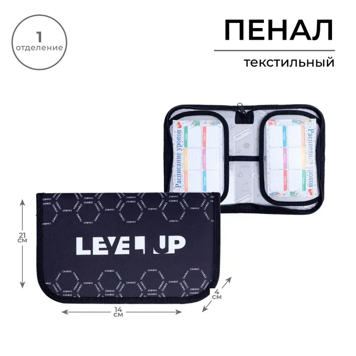 Пенал Level up 1 секция, 130×210×40 мм, 2 откидные планки, тканевый — Характеристики
