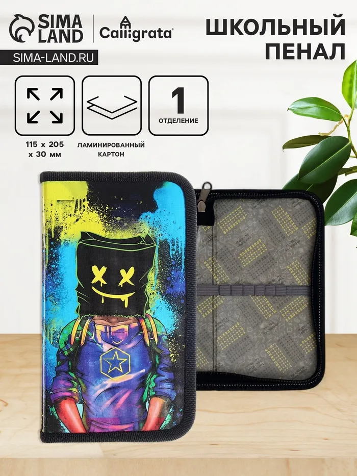 Пенал «Маска» 1 секция 115×205×30 мм, ламинированный картон — Характеристики