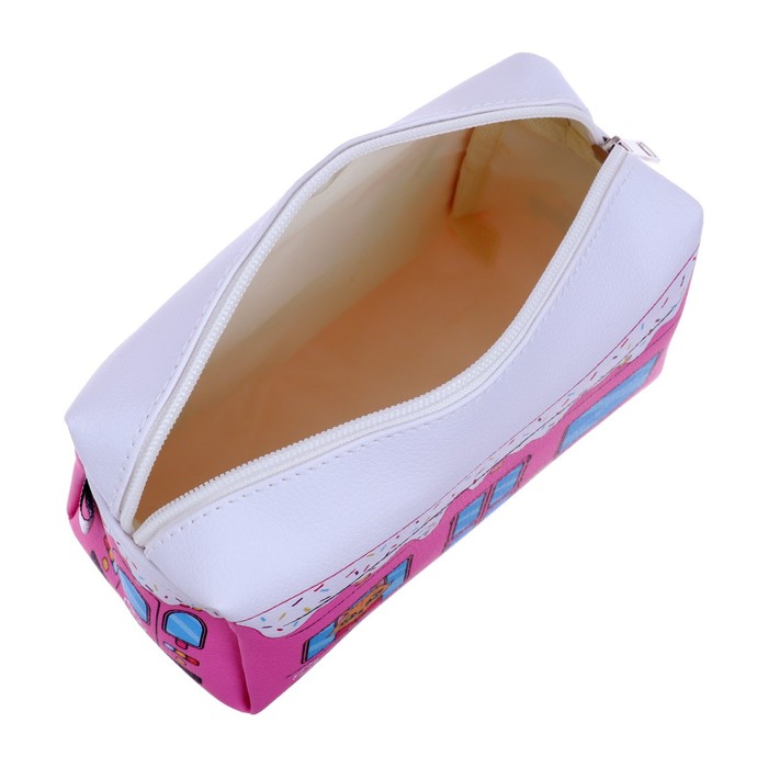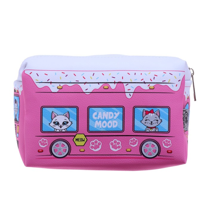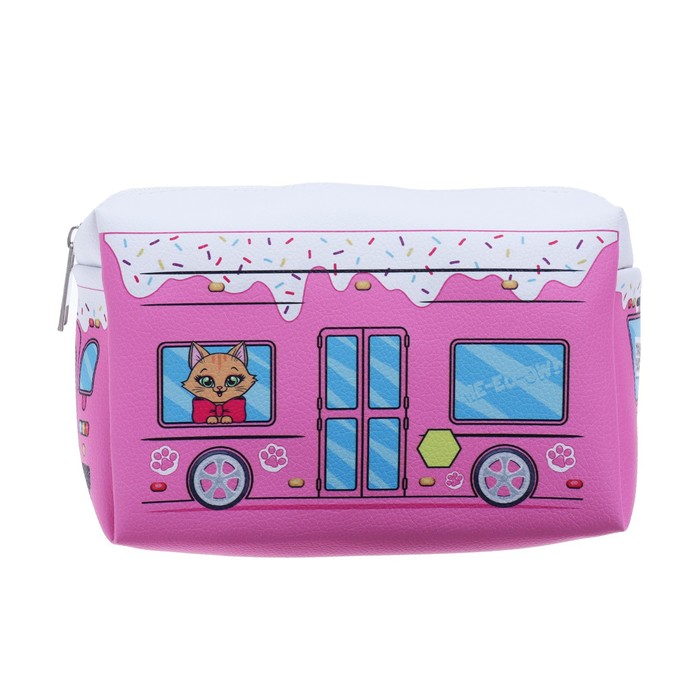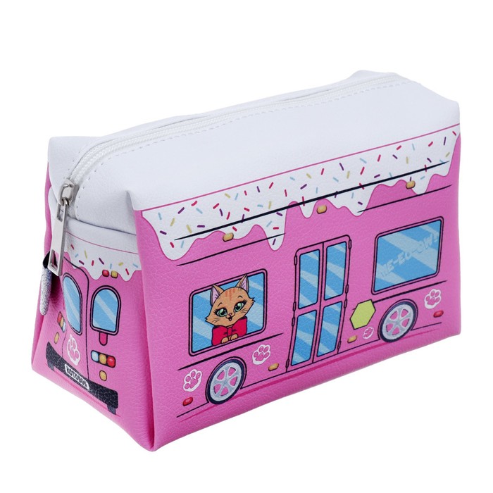 Пенал мягкий, 1 отделение, 100×180×80 мм, объёмный «Автобус с котятами», розовый