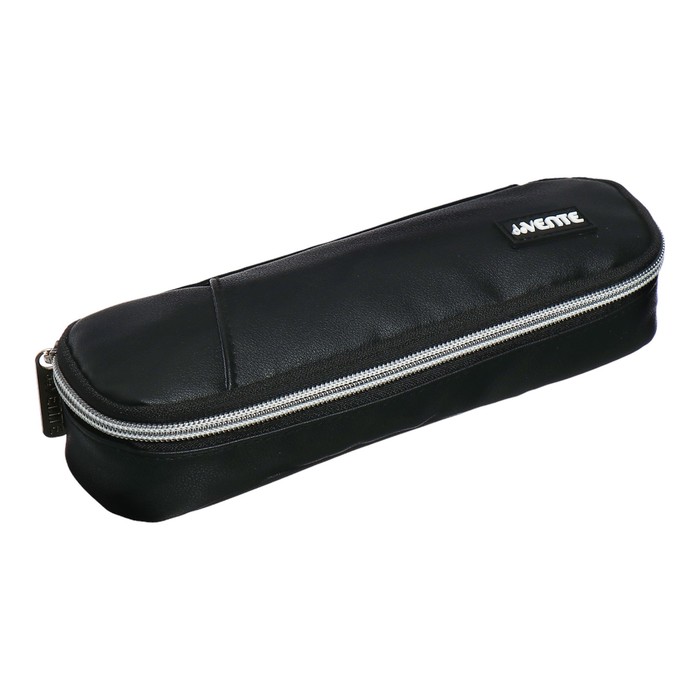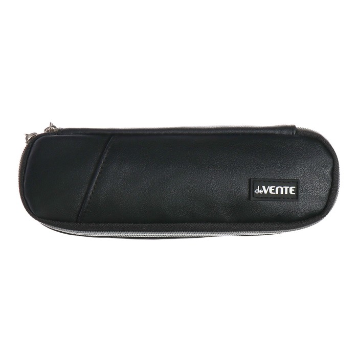 Пенал "deVENTE. Private" 22x6x4 см, овальный для 40 предметов, матовая искусственная кожа до -40C, внешний карман, внутренний карман, с каучуковой аппликацией, черный