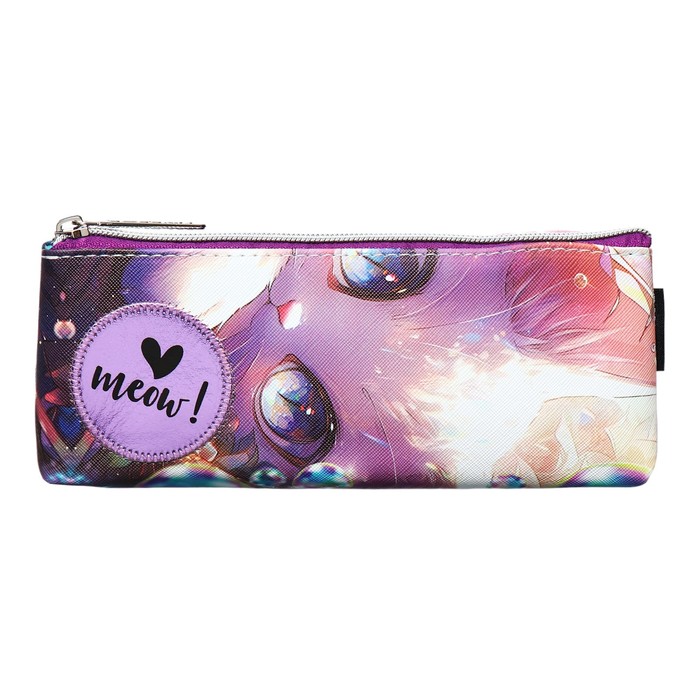 Пенал "deVENTE. Lovely Cat" 21x8x3,5 см, треугольный для 45 предметов, на молнии, антивандальная искусственная кожа, аппликация из искусственной кожи металлик, с подкладом