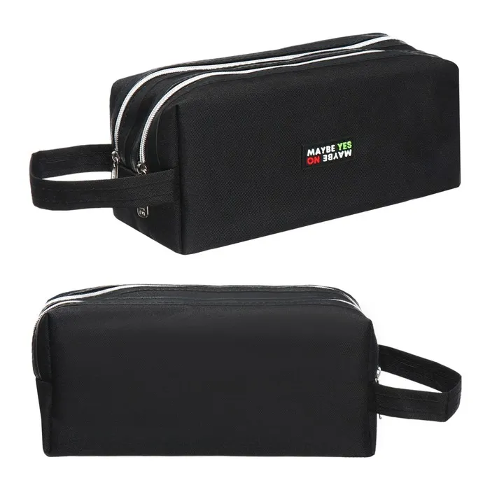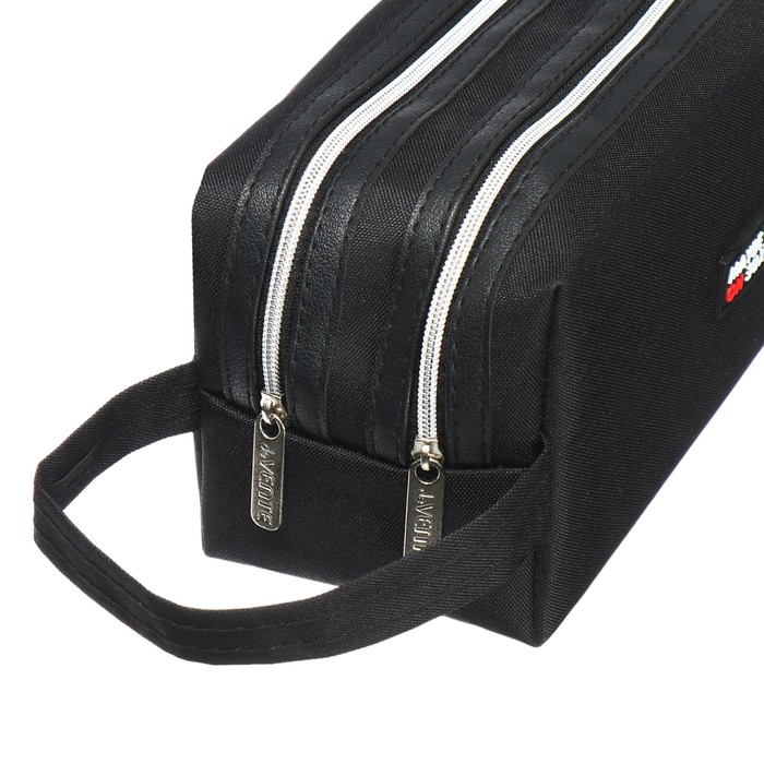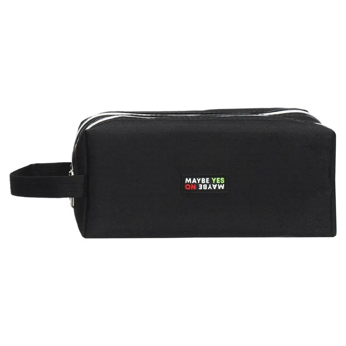 Пенал "deVENTE. May Be YES" 21x9x9 см, прямоугольный для 130 предметов, текстильный, 2 отделения на молнии, с ручкой, внутренние карманы, с каучуковой аппликацией.
