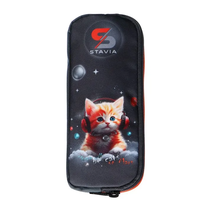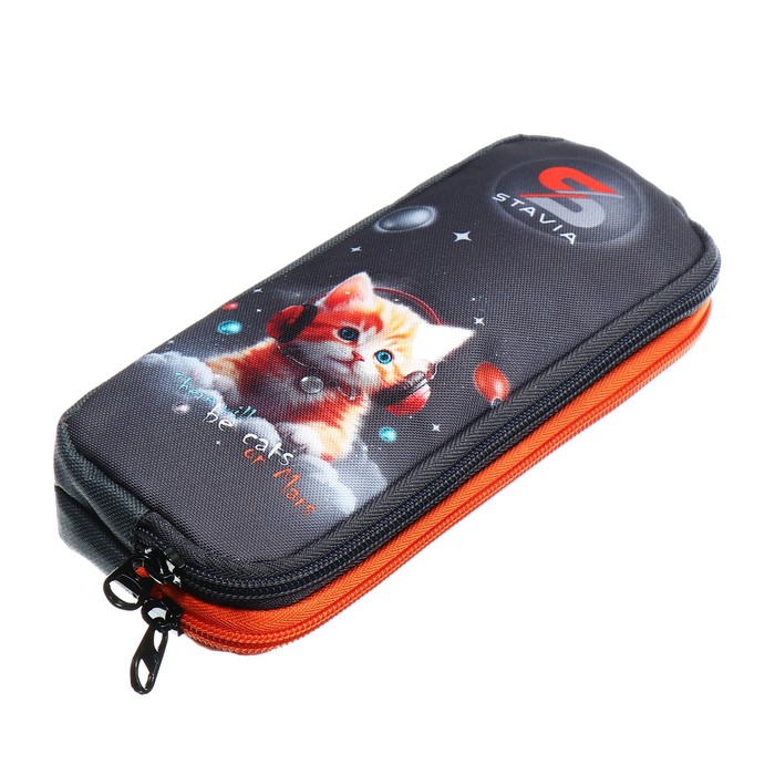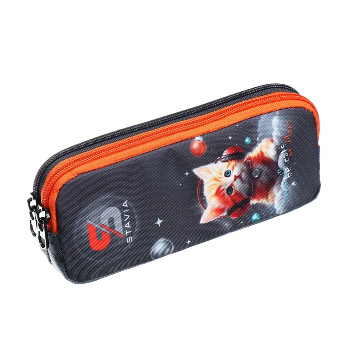 Пенал мягкий, 2 отделения, объёмный, 90 х 220 х 40 мм, Stavia "Марсианский котик" серый 86228 — Характеристики