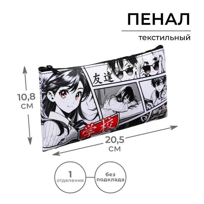 Пенал мягкий «Аниме», 1 отделение, 108×205 мм, плоский, Calligrata — Характеристики