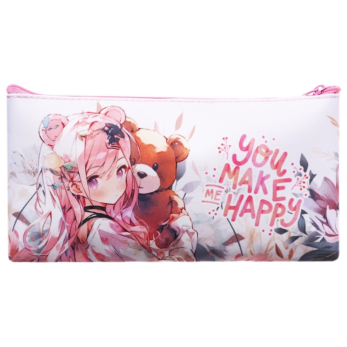 - Яркий дизайн: Розовый фон с аниме-рисунком понравится поклонницам японской культуры. Выделит пенал среди обычных школьных принадлежностей.