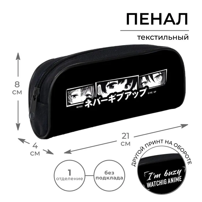 Пенал мягкий «Аниме», 1 отделение, 80×210×40 мм, объёмный — Характеристики