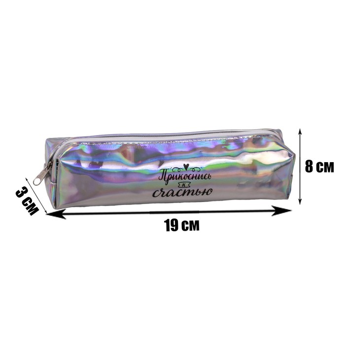 Пенал мягкий «Прикоснись к счастью», 1 отделение, 80×190×30 мм, кожзам зеркальный, серебристый — Характеристики