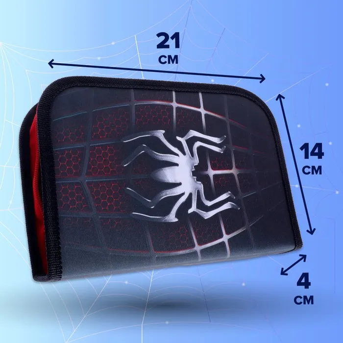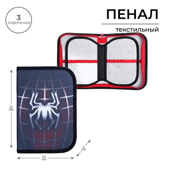 Пенал «Паук» 3 секции, вкладка внутри, 140×210×40 мм, тканевый — Характеристики