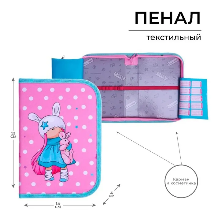 Пенал школьный, 1 секция, 14×21×4 см «Девочка с зайчиком» — Характеристики