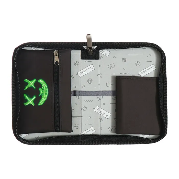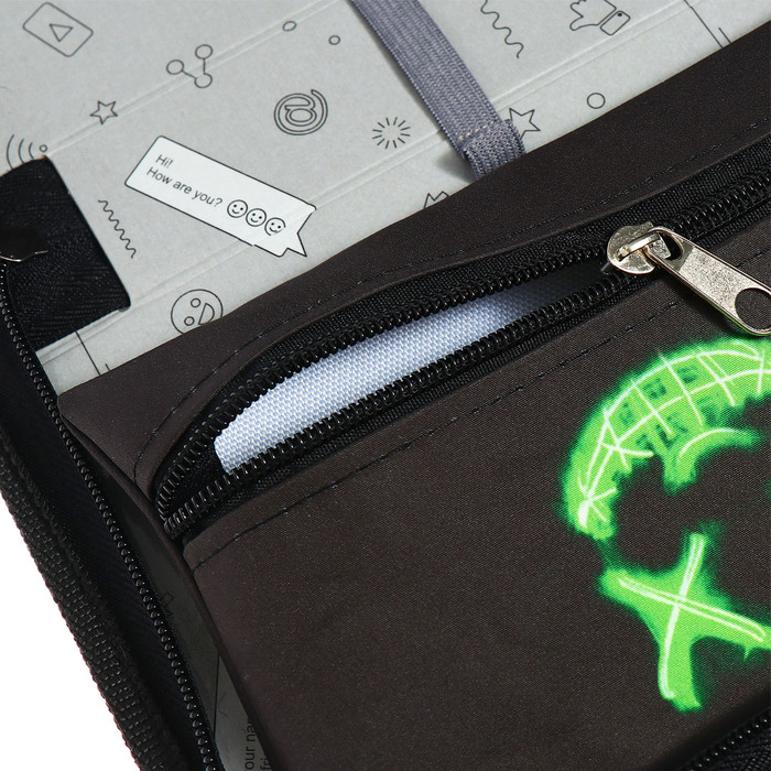 - Элегантный дизайн: Серое и черное сочетание с рисунком на текстильной поверхности делает пенал стильным выбором для любого ученика. Этот лаконичный, но яркий элемент подчеркнет индивидуальность.