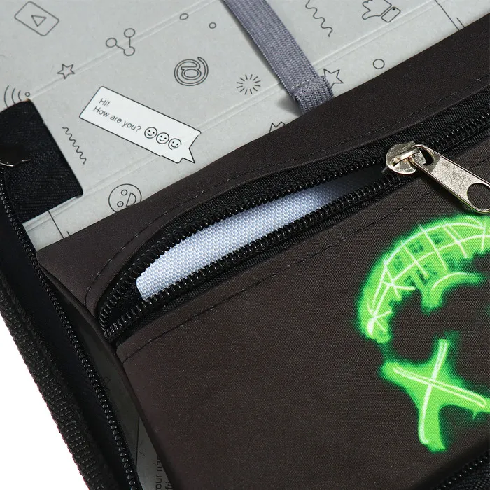 - Каркасная конструкция: Прочный корпус обеспечивает долговечность, сохраняя форму пенала даже при полной заполненности. Это особенно важно для тех, кто ценит аккуратность и долговечность вещей.