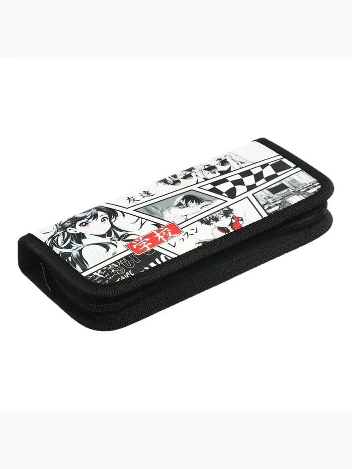 - Дизайн с аниме-принтом: Черно-белый рисунок в стиле аниме выделяет этот пенал, добавляя юному владельцу индивидуальности. Принт создан, чтобы вдохновлять фанатов анимации и манги.