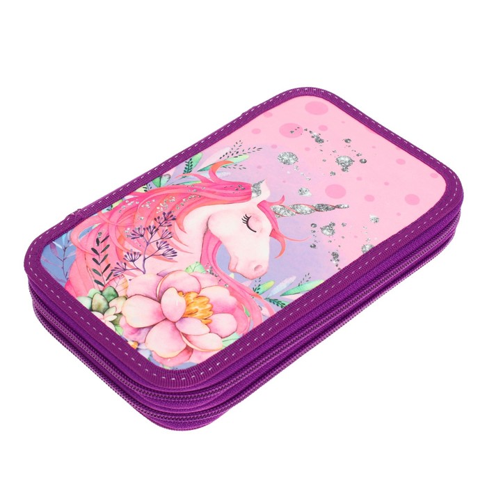 Пенал школьный, 2 секции, 12.5×20.5×4 см «Единорог»