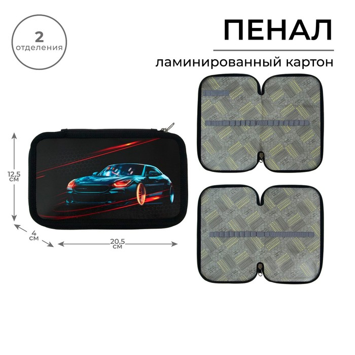 Пенал школьный, 2 секции, 12.5×20.5×4 см «Тачка» — Характеристики
