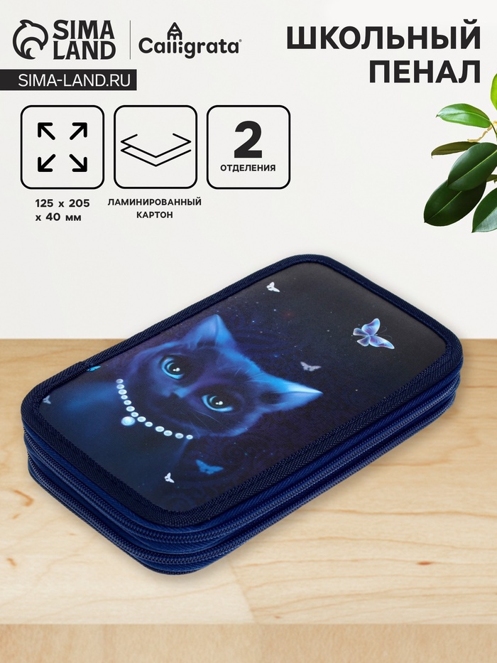 Пенал школьный, 3 секции, 14×21×4 см «Милый котик» — Характеристики
