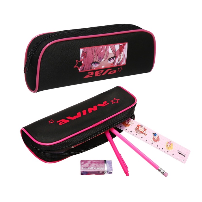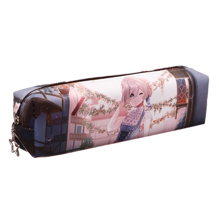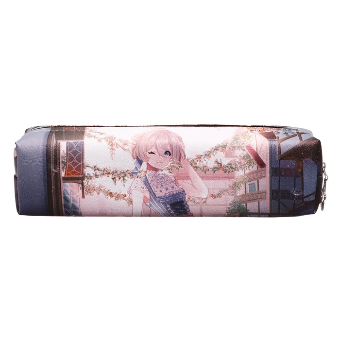 Пенал школьный Calligrata «Аниме», на молнии, с принтом, серо-розовый — Характеристики