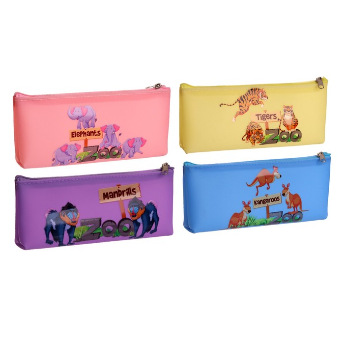 Пенал прямоугольной формы с одним вместительным отделением застегивается на молнию с удобным бегунком.
