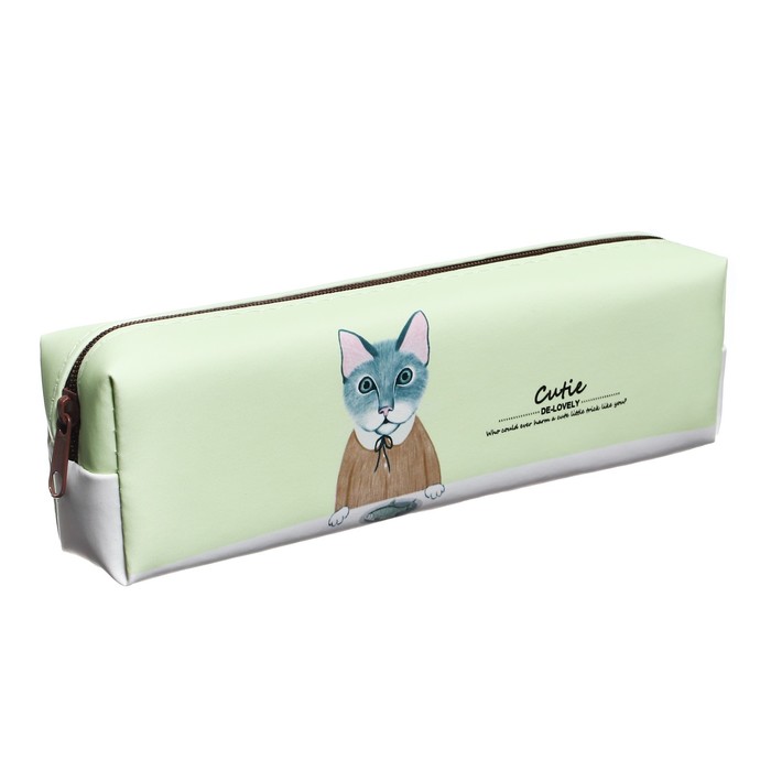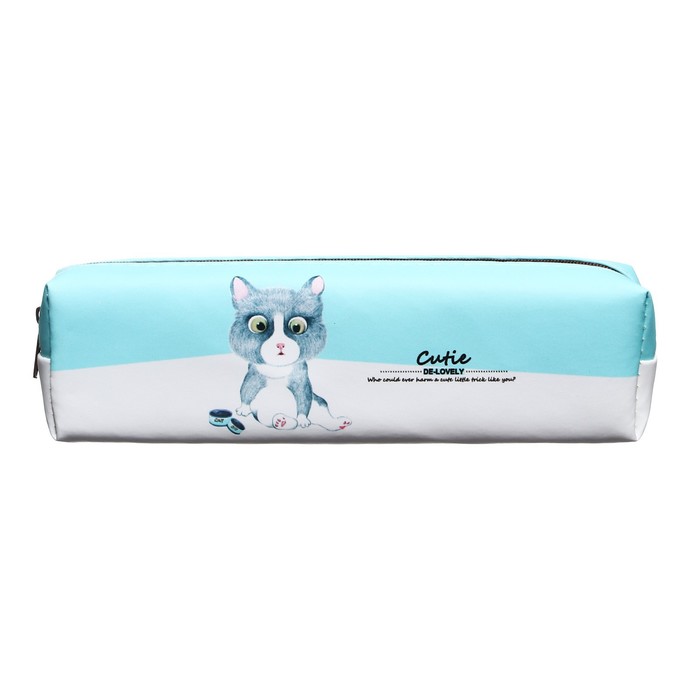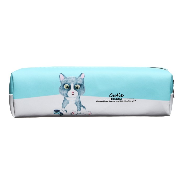 Пенал школьный "Кот", на молнии, голубой