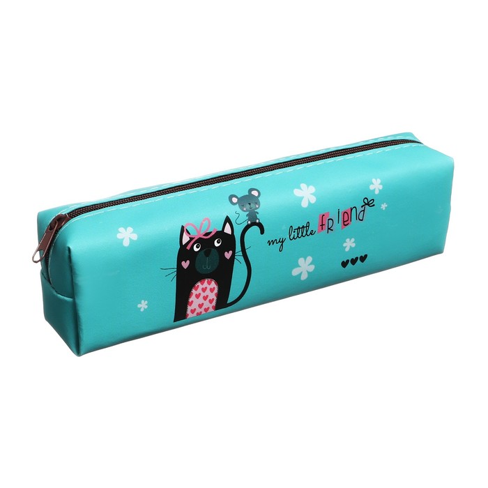 Пенал школьный "Котик", на молнии, зелёный — Характеристики