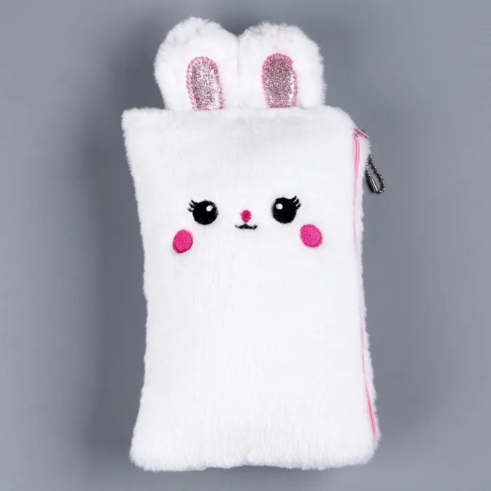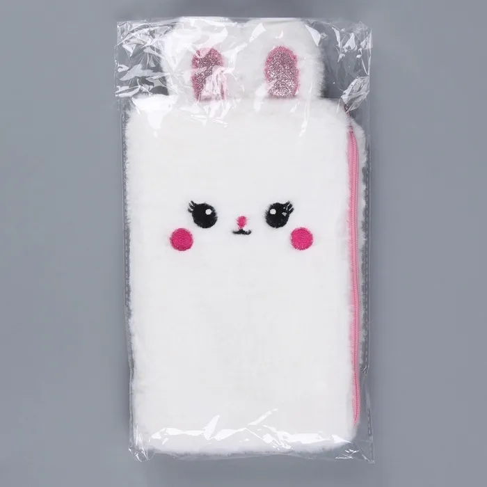 Пенал школьный мягкий «Зайчик», 21×13 см, плюш, белый — Характеристики