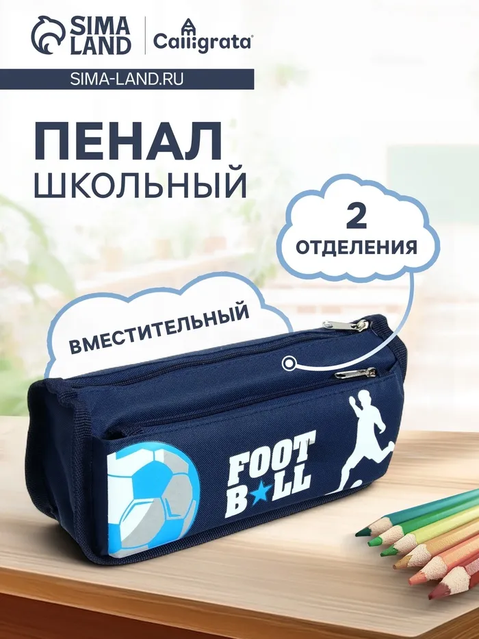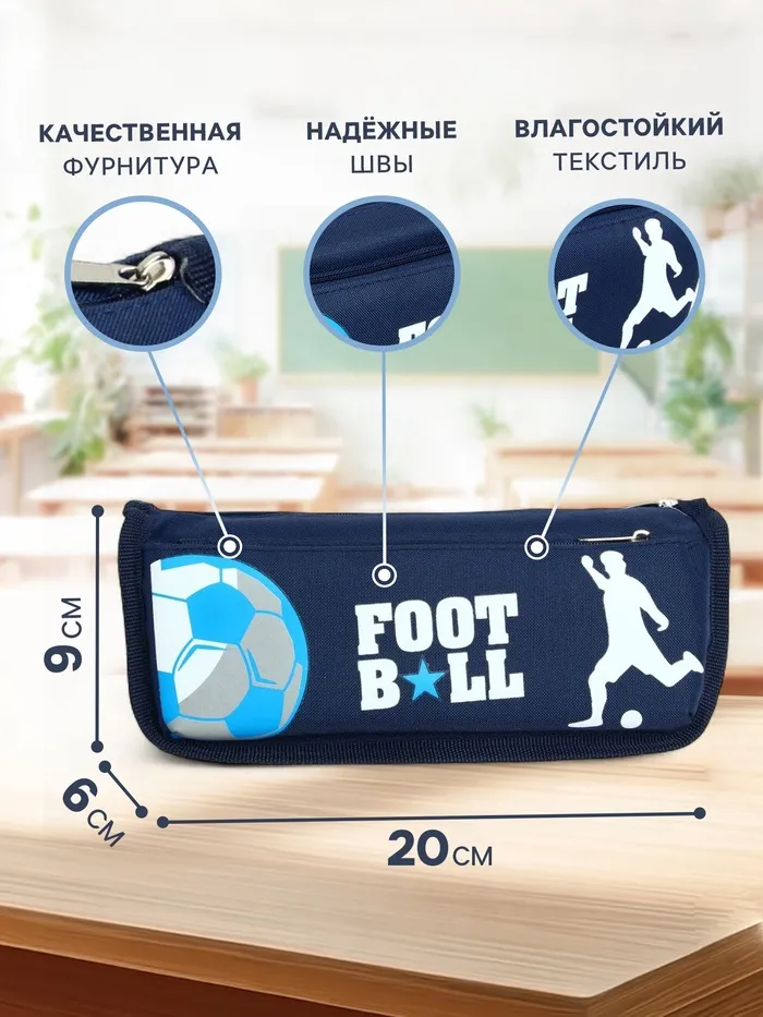 Пенал школьный на молнии 2 отделения "Футбол", МИКС — Характеристики