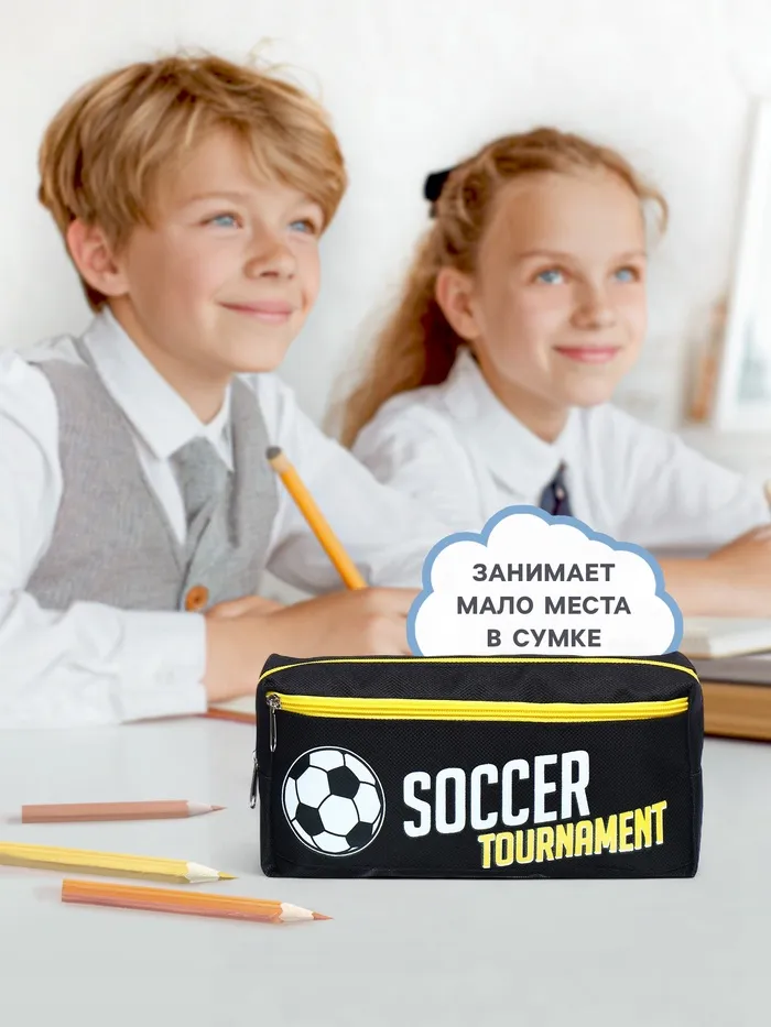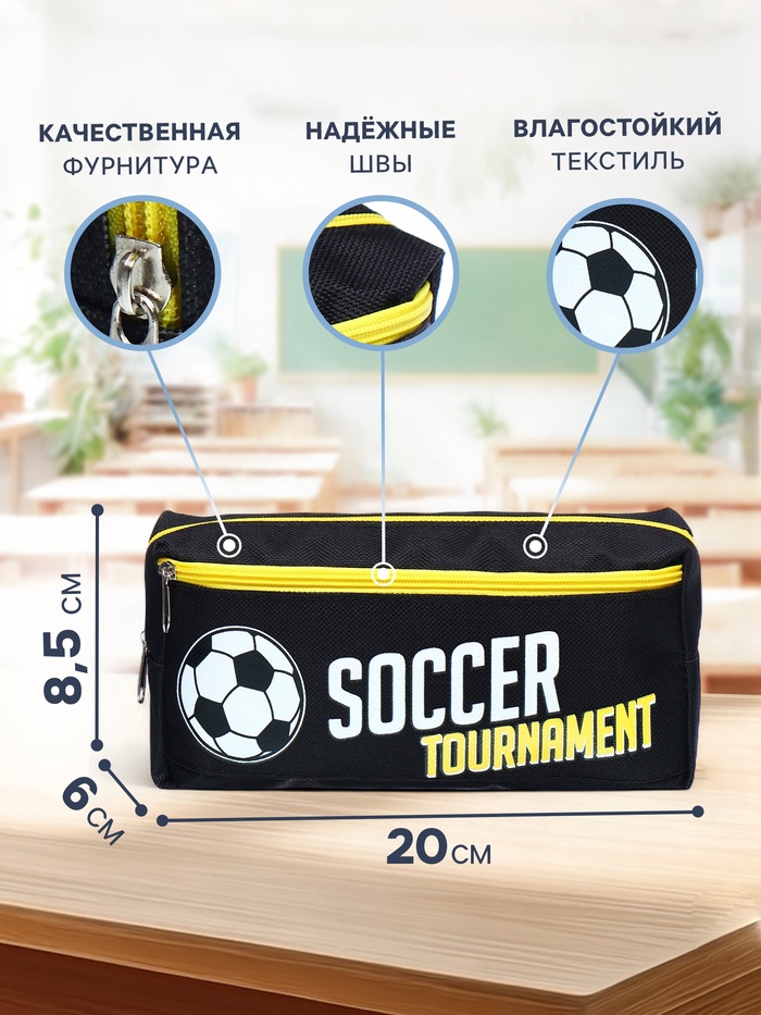 Пенал школьный на молнии Calligrata "Футбол", 2 отделения, черный — Характеристики