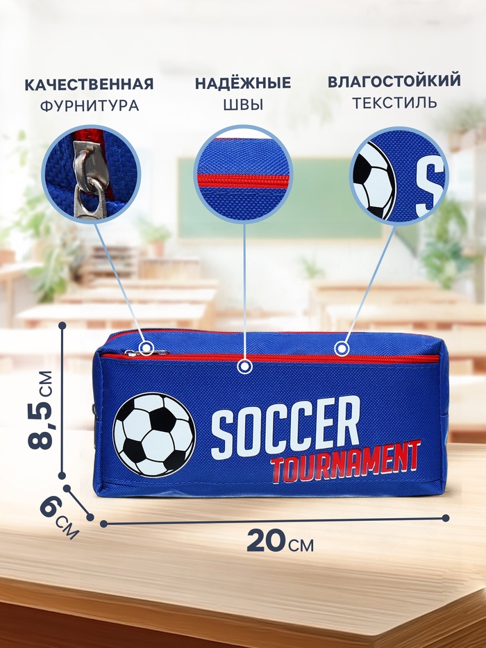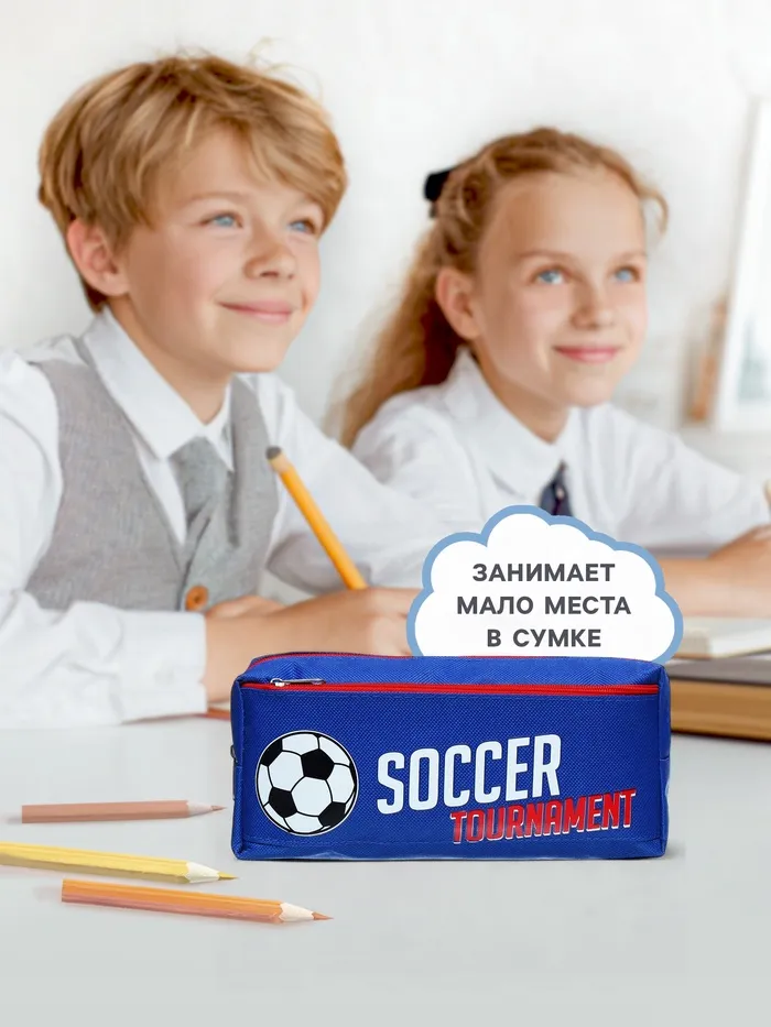 Пенал школьный на молнии Calligrata "Футбол", 2 отделения, синий — Характеристики