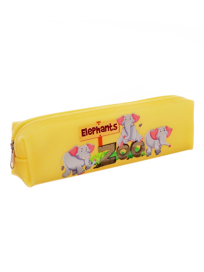 Пенал школьный на молнии Calligrata «Зоопарк: слоны», с рисунком, жёлтый — Характеристики