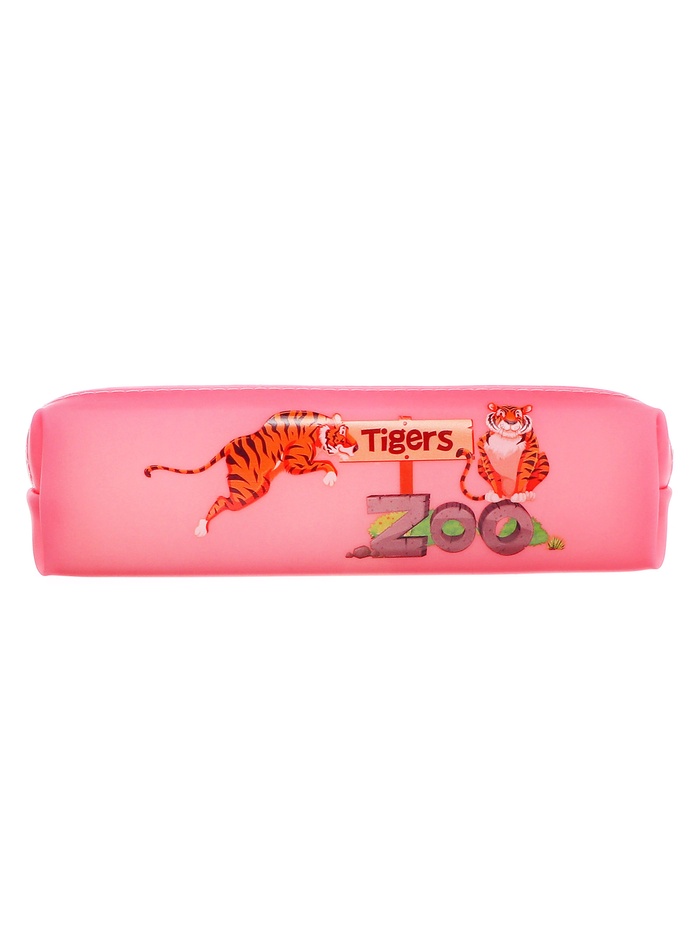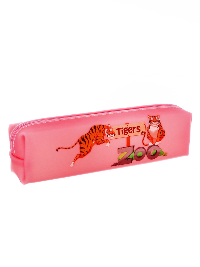 Пенал школьный на молнии Calligrata «Зоопарк: тигры», с рисунком, розовый — Характеристики