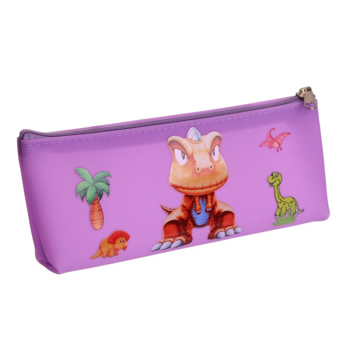 Пенал школьный на молнии "Динозавр", МИКС