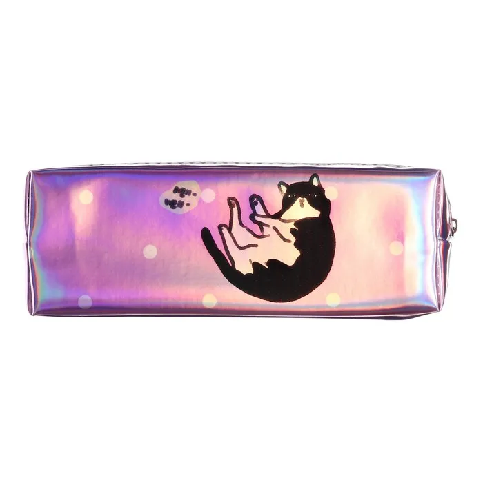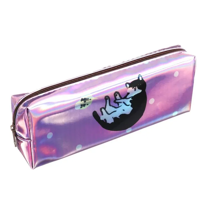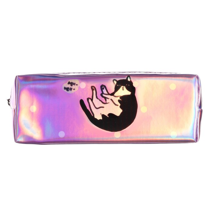 Пенал школьный на молнии голографический "Кот"