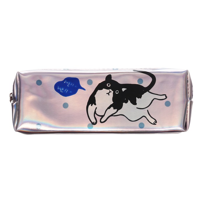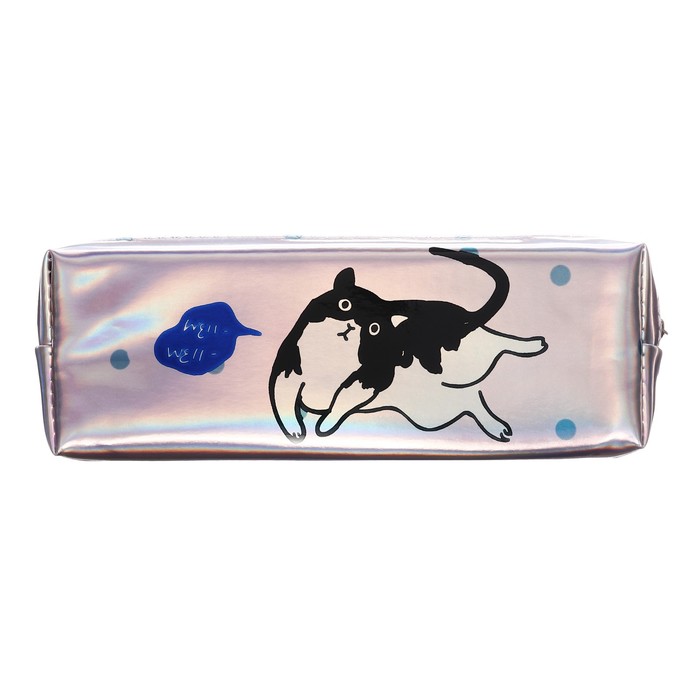 Пенал школьный на молнии голографический "Кот"