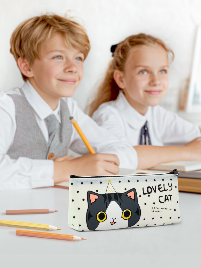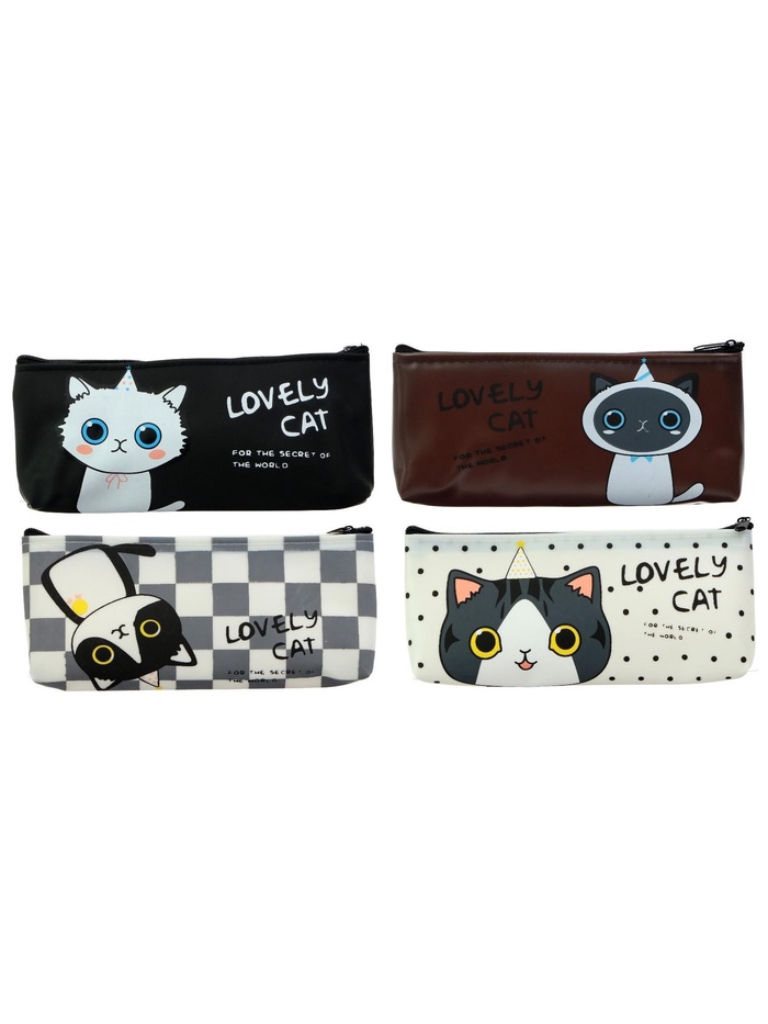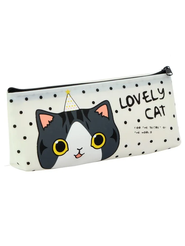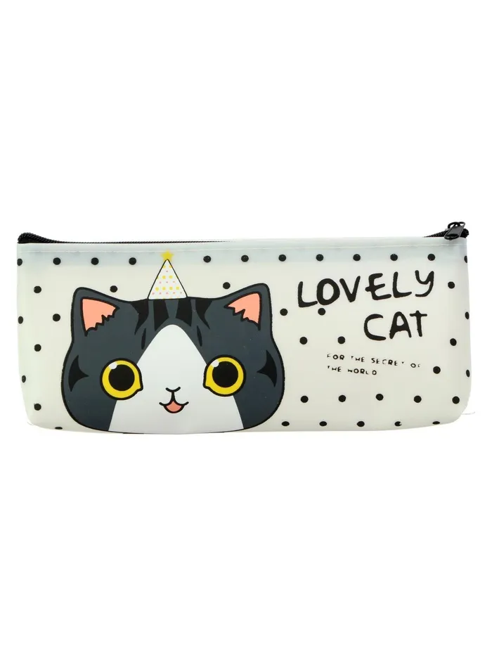 Пенал школьный на молнии силиконовый "Котик", МИКС