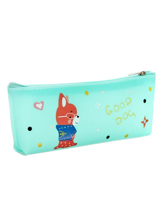Пенал школьный на молнии Собачка Бирюзовый