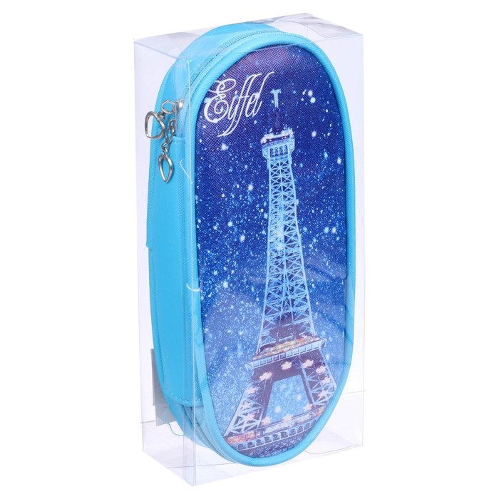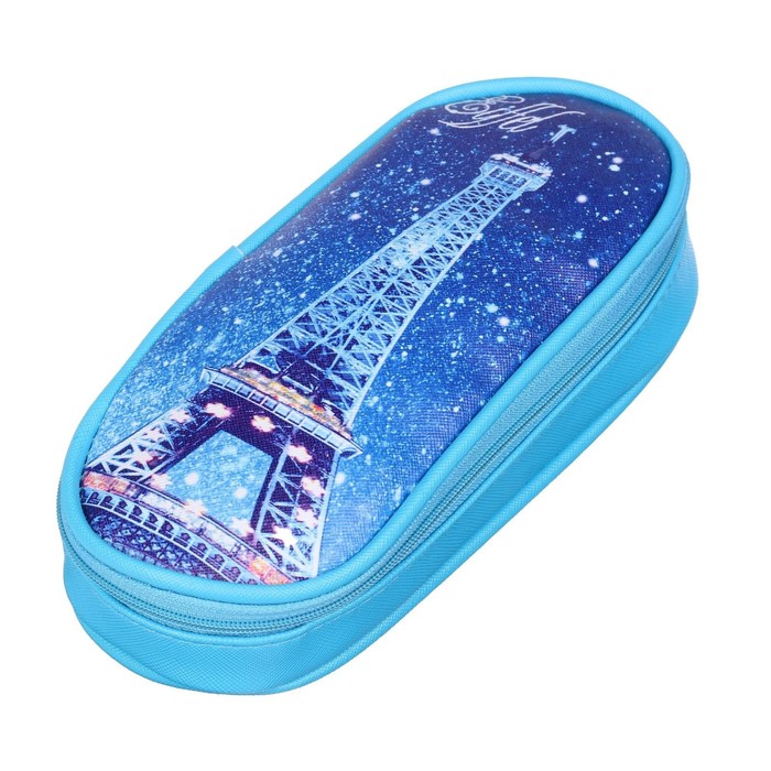 Пенал школьный «Париж» на молнии, цвет синий