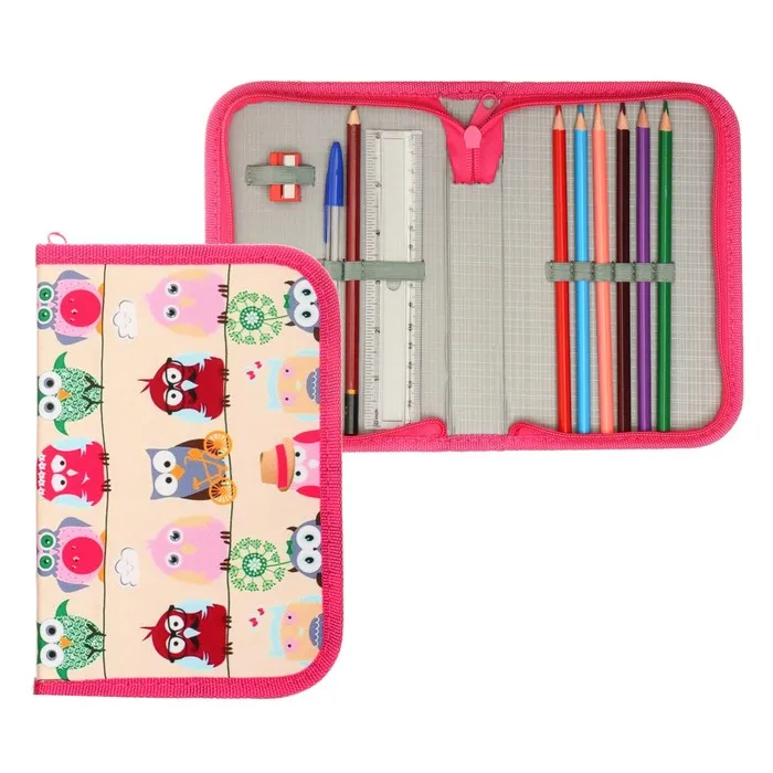 Пенал школьный "Совы", 13 х 19,5 см, на молнии, 1 секция, с наполнением, ткань — Характеристики
